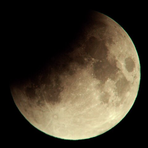 Zatmění Měsíce 9. listopadu 2003, 00:50 hod. Newton 200mm, f/4, okulár Vixen LV 15 mm Nikon Coolpix 880, zoom 8mm, ISO 100, expozice 1/250 sec.