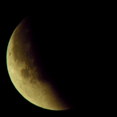 Zatmění Měsíce 9. listopadu 2003, 03:16 hod. Newton 200mm, f/4, okulár Vixen LV 15 mm Nikon Coolpix 880, zoom 8mm, ISO 100, expozice 1/60 sec.