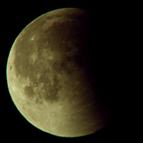 Zatmění Měsíce 9. listopadu 2003, 03:45 hod. Newton 200mm, f/4, okulár Vixen LV 15 mm Nikon Coolpix 880, zoom 8mm, ISO 100, expozice 1/150 sec.